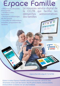 La plateforme Espace Famille est accessible sur ordinateur, smartphone et tablette. Au-delà de simplifier les démarches administratives, la Communauté de Communes Le Tonnerrois en Bourgogne diffusera régulièrement sur celle-ci des documents tels que les programmes des vacances, des rappels pour les sorties, des actualités, le règlement intérieur, etc…