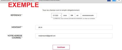 Tapez l'identifiant (sur votre facture), le montant exact (sans signe €) et votre adresse e-mail.